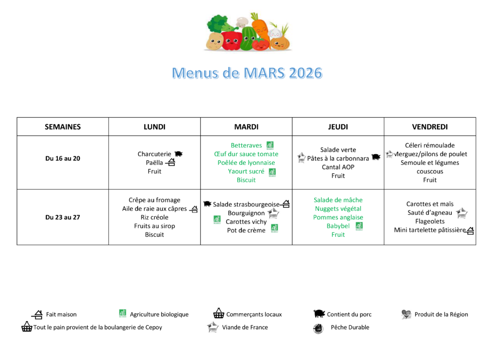 Vous trouvez ainsi chaque semaine une journée en vert dans le menu, avec parfois des oeufs, des légumineuses ou bien des alternatives végétales (nuggets végétariens, émincé végétal, etc.)